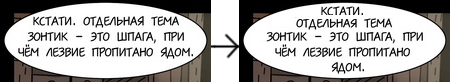 очень понравились и первая и вторая полосы цветом.... про "кучу текста" частично лишнего уже все сказали, еще как на мой взгляд для кадров выбраны не совсем удачные ракурсы((( например, нет акцента, что в конце улицы появилась фигура, она там есть, но она не бросается в глаза, её легко не заметить, следовательно зритель (а у меня так и получилось) может легко не отметить себе этот факт, опять же далее идет (словами) акцент на зонтик, но он не подвержден картинкой, потом далее девушка смотрит на часы, если это важный факт, то он опятьже не выделен, ну и саму улицу, можно было бы попробывать немножко с другого ракурса показать, чтобы было более очевидно, что они в переулке стоят)))